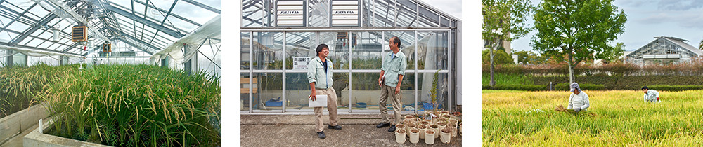 Each rice plant in the greenhouse has its own unique genetic makeup. We manually check the white unripe grain percentage for all plants. This is an exhausting task because the work is intense, the amount of work is huge, and the heat in the greenhouse is extreme, a combination that can make you lightheaded. We roll up our sleeves so that we can, as soon as possible, do what we need to do to market tasty rice that is resistant to high temperatures.