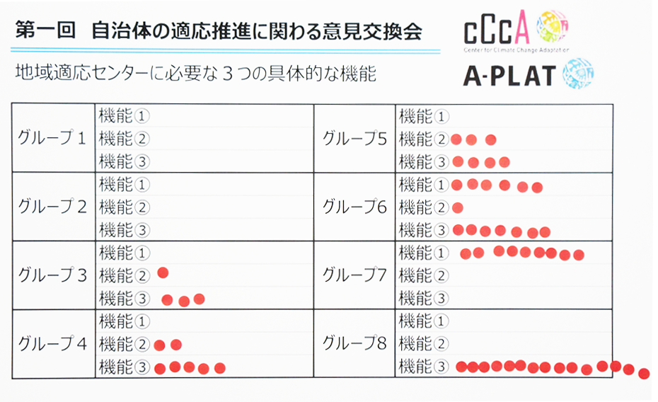 皆さんの県で適応センターを設立することを想定して考えてみてください。最も必要な具体的な機能を3つ選びます。(10分)