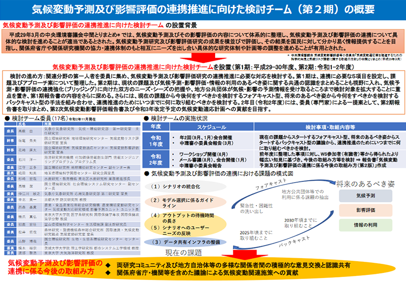 - 気候変動予測及び影響評価の連携推進に向けたチーム(第2期)の概要