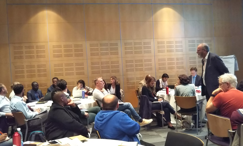 適応の推進において、適応策の実践とリスク評価を反復して行うことの重要性が示され、そのための参加型のリスク評価スキームが説明されました。また、リスク評価で全てが解決するわけではなく、評価結果を活用し、リスクを避け目的を達成するためにどのような対策を行うかを決めることが重要となることが強調されました。その後、タイ、マダガスカル、ベナンでの実例が紹介されました。初日ということもあってか、大勢の参加者が各国の説明を注意深く聞いていました。