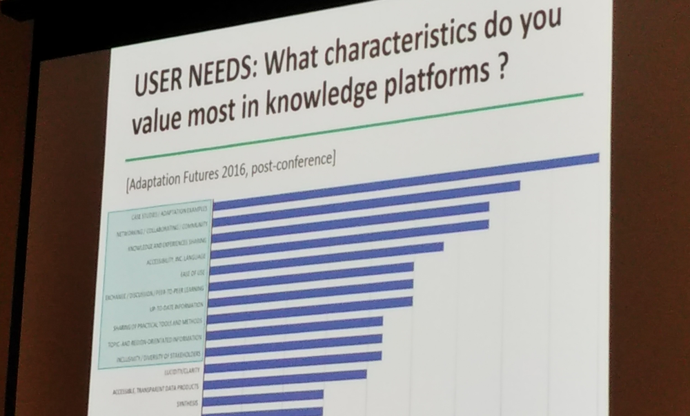 Adaptation Futures の初日である18日、適応を推進することを目的としたプラットフォームに関するセッションが開催されました。国立環境研究所が運営するA-PLATもこうしたプラットフォームに該当します。