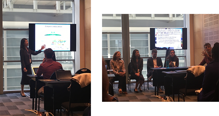 セッションではこうした連携体制について気候変動戦略連携オフィスの福村佳美高度技能専門員が発表しました。諸外国から集まった発表者からは、地元で生活する人を主体とした適応策の実装の紹介もあり、日本とはまた違った形の取組があることを発見しました。今回の経験を今後のA-PLATの活動に取り入れていきたいと考えています。
