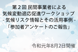 CCCA8月2日に開催した「第2回 民間事業者による気候変動適応促進ワークショップ - 気候リスク情報とその活用事例 -」の参加者アンケートについて掲載しました。