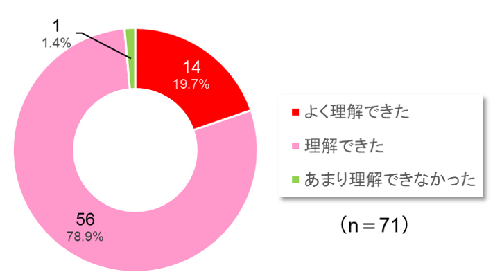 「各STEPの一連の流れを説明いただき理解できた。」「各STEPの注意ポイントや必要な情報などについての話があるとよかった。」などのコメントをいただきました。