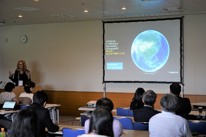 まず、Future Earth事務局長のエイミー・ルアーズ氏による基調講演では、地域における気候変動適応やレジリエンス構築において、地域に留まらないグローバルな関係者間のコネクションとそれを育むプラットフォームの重要性、また現代のデジタル技術はコネクション形成の推進力になり得ることが指摘されました。