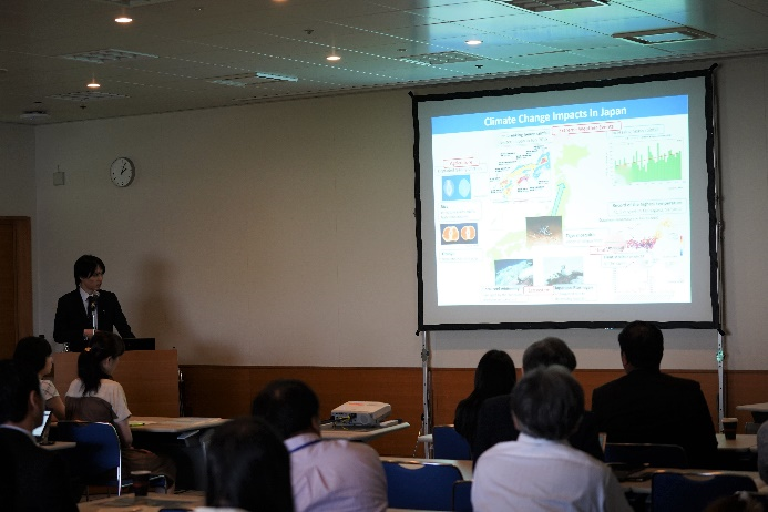 国環研からは、岡和孝氏が気候変動適応センターの地域支援等の活動および気候変動適応情報のプラットフォーム(A-PLAT・AP-PLAT)について、塩竈秀夫氏が気候変動と異常気象の関係性について、戸川卓哉氏が気候変動の地域社会への複合的な影響について、それぞれ発表を行いました。