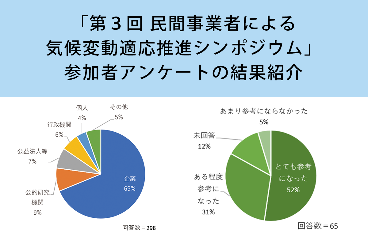 CCCA「第3回 民間事業者による気候変動適応推進シンポジウム ― 気候リスク管理と適応ビジネス ―」の参加者アンケートの結果を掲載しました。