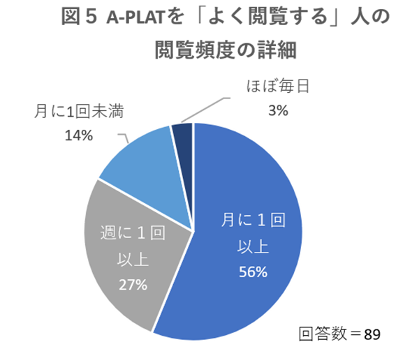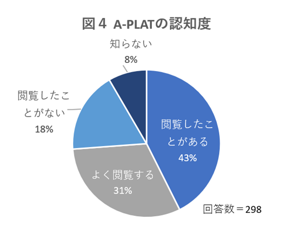74%の回答者がA-PLATを「よく閲覧する」もしくは「閲覧したことがある」と回答しています。