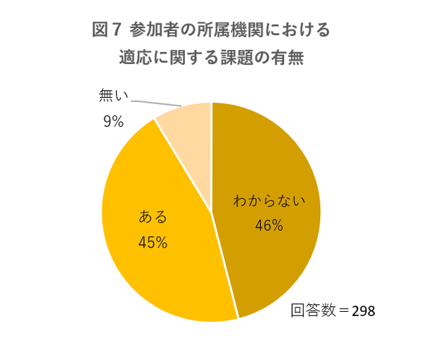 45%の参加者は、所属機関において気候変動適応に関する課題が「ある」と回答しています。