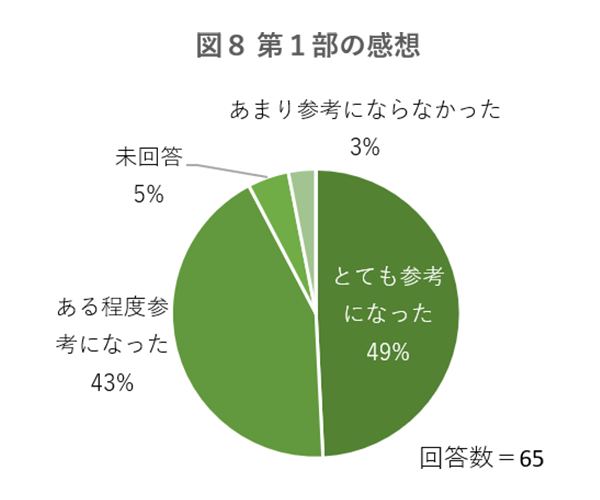 プログラムの第1部について、92%の参加者が「参考になった」と回答しています。