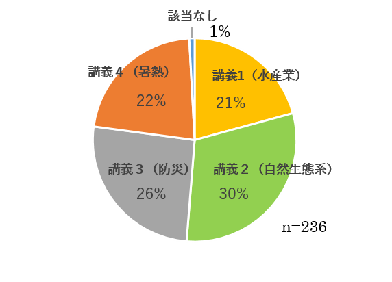 - 内容は専門的なところが多く少し難しく感じたが、分野ごとにどんな影響、適応策があるか学ぶことができたのはとても良かった。