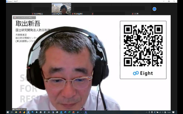 【講義3】では、防災科学技術研究所総合防災情報センターの取出 新吾センター長補佐から、防災科研の災害対応についてご説明いただき、自治体の受援力向上のための情報伝達のコツについて具体例を挙げながらわかりやすくご講義いただきました。