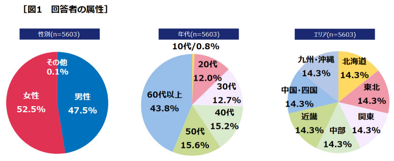 今回の調査は、気候変動適応広域協議会が設置されている7地域について、今後の継続的な変化を一定程度検出できるよう、回答者数を各地域 800(予想回答比率 25%、許容誤差:3%、信頼度:95%として母集団人口数から算定)と設定した上で、地域内の性別、年代別人口比で回答者数の割付を行って実施しています。なお、性別その他については割付外としました。