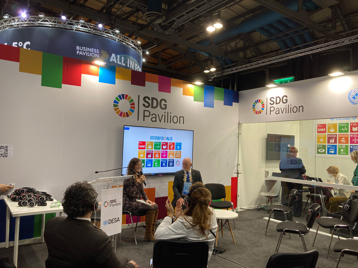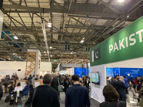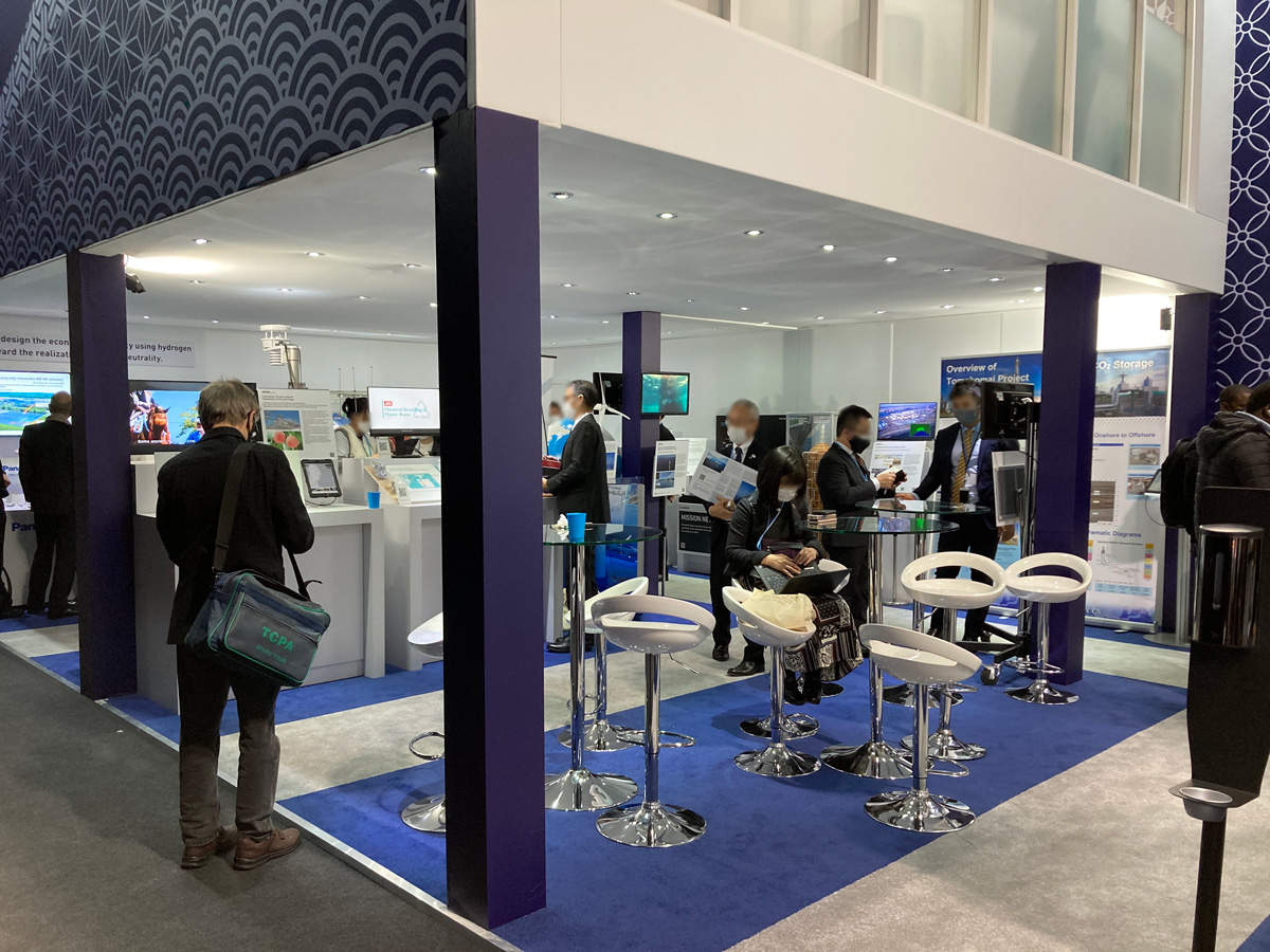 パビリオンスペースでは、日本を含めた各国や機関の展示やセミナーがあちこちで同時に行われて、それを見に来ている人でごった返しています。