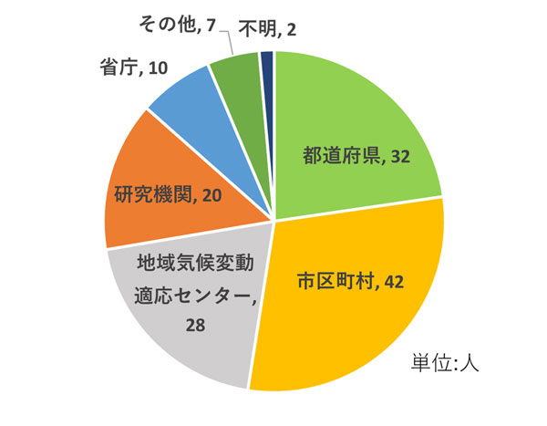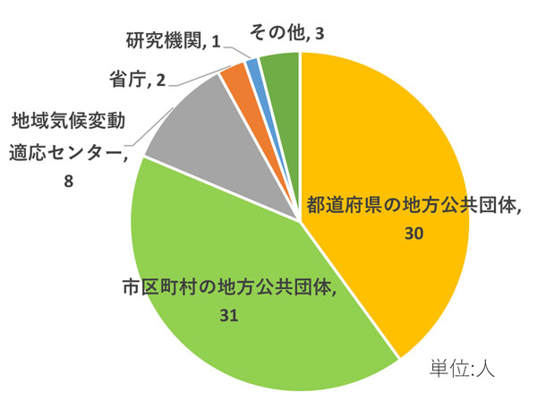 全国約70の地方公共団体、地域気候変動適応センター等から約140名の皆様にご参加いただきました。また、地方公共団体の皆様については環境部局だけではなく農林水産部局や水道部局、都市整備部局等の方々にもご参加いただきました。事後アンケートには約75名の方からご回答をいただきました。