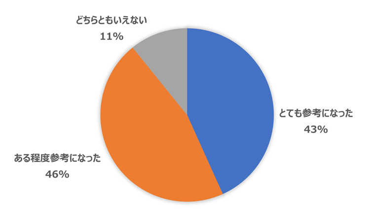 • 紹介された先進事例の取組はこれからの公務員として目指すべき姿であると感じ、モチベーションの向上につながるものだった。