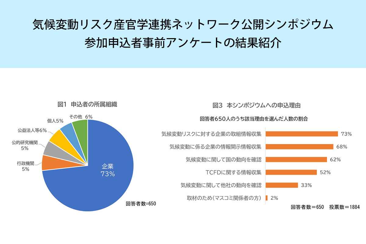 CCCA「気候変動リスク産官学連携ネットワーク公開シンポジウム」の参加申込者事前アンケートの結果紹介を掲載しました。
