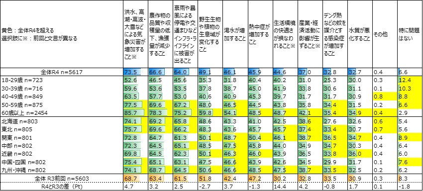 また、「台風や洪水、土砂災害などの増加」(※令和3年度は「風水害の増加」との選択肢)は令和3年度より10ポイントほど増加しました。