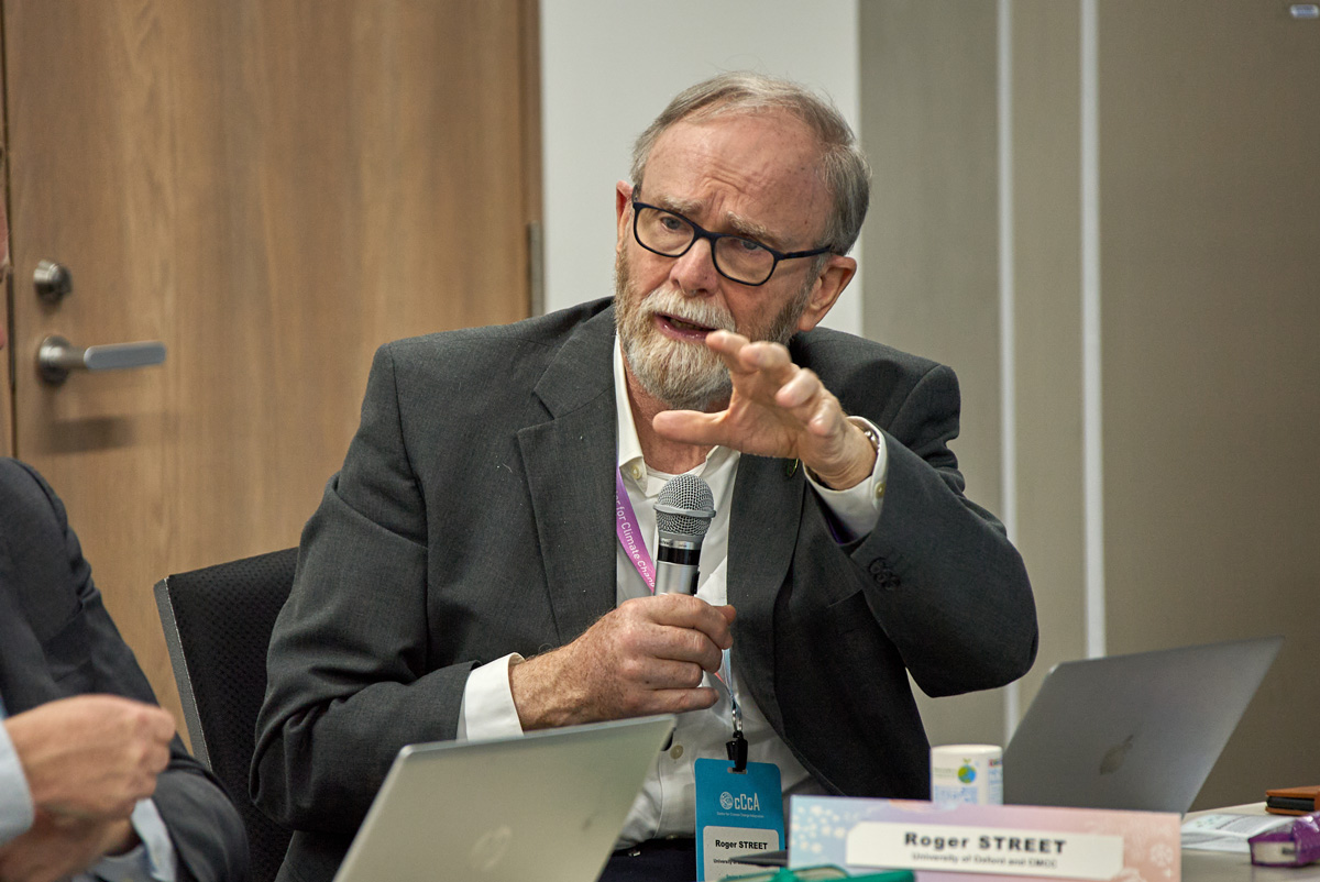 プレゼンテーションに刺激され、多くの参加者が適応プラットフォームの推進に役立つ意見を交換しました。議論では、さまざまなセクターへの適応情報の提供方法や民間セクターとの協力関係について注目が集まりました。 また、異なる国々で実施されている既存のガバナンスシステムが適切に適応を促進しているかどうかについても考察がなされました。オックスフォード大学環境変化研究所の名誉研究員及びグリーン・テンプルトン・カレッジのアソシエイト・フェローであるロジャー・ストリート氏は、、地域社会の適応アクションを促進するために、セクターごとに分かれた現在の戦略立案方式からより体系的なアプローチに切り替えることの重要性を指摘しました。 議論の最後には、今回のような定期的な会議の重要性を全員が確認し、協力関係の次のステップについて話し合われました。