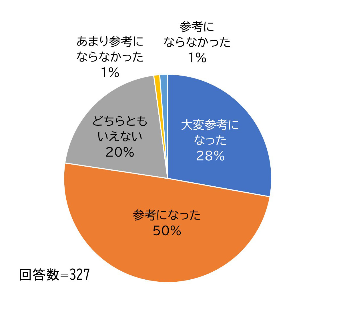 第4部では、講演いただいた企業への質疑応答およびパネルディスカッションを行いました。図4 は、参加者の第4部に対するアンケート結果です。78%の方から、第4部が参考になった旨回答いただきました。コメントの一部とともにご紹介します。