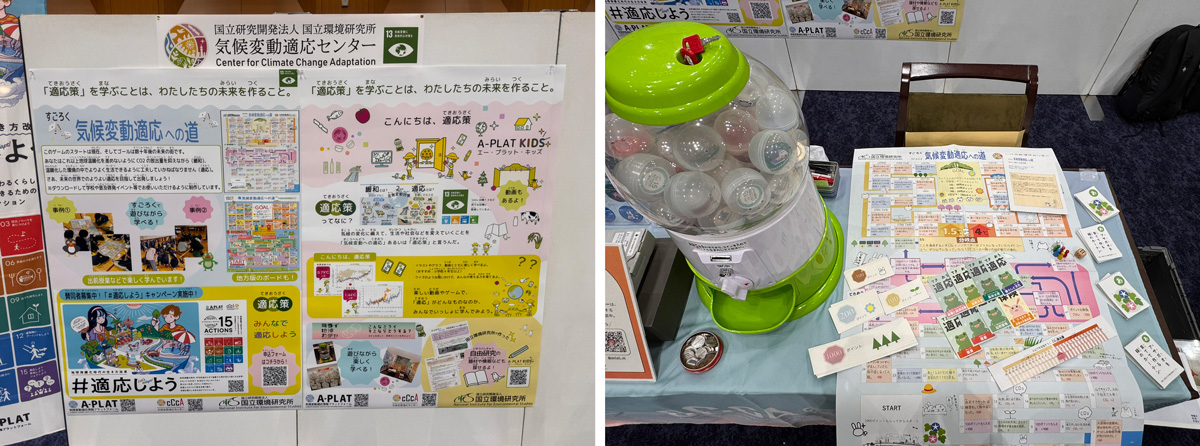 ブースでは、実物のボードを用いて来場者に「適応行動」や「緩和」の違いについて解説を行いました。