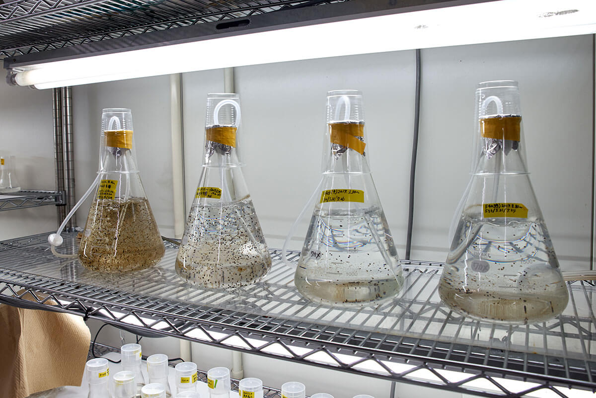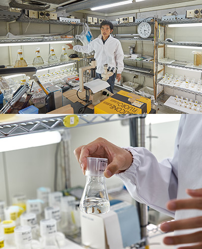 当研究課には、全国各地のワカメの「フリー配偶体」がそろっており、10年たってもそのままの状態での保存が可能です。もともと「フリー配偶体」に着目したのは私の前々担当者でした。オスメスの配偶体を分けて保存しておけば、鳴門わかめの品種改良に無限の可能性があるとの思いから、15年ほど前に全国から取り寄せていたのです。