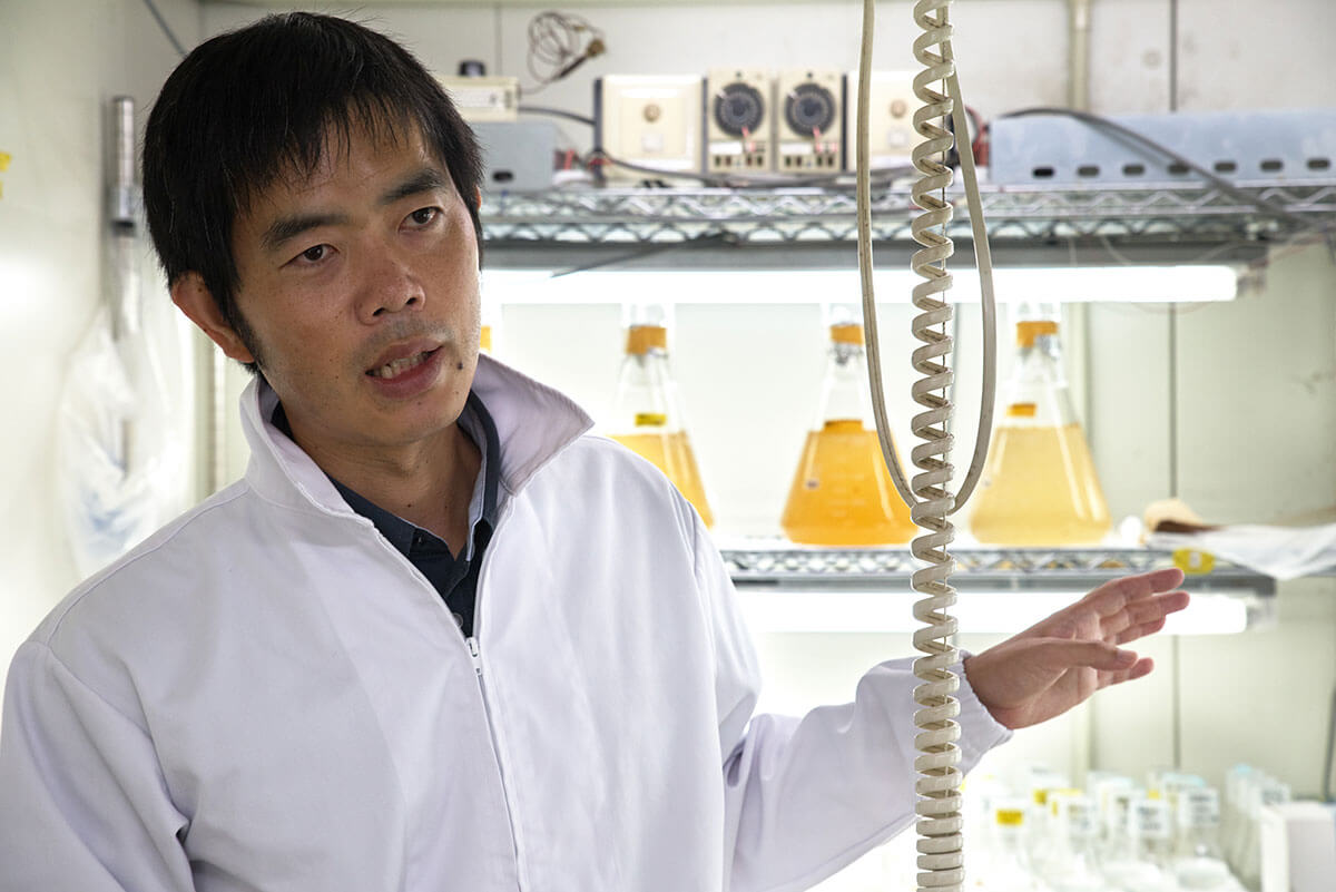 2011年、東日本大震災で宮城県のわかめが不足したとき、7年間保管していた気仙沼産の「フリー配偶体」が役に立ちました。いつでも作りたいわかめが作れる、これも配偶体で保存するメリットといえます。いま、災害対策でBCP(事業継続計画)の取り組みが進められていますが、震災や培養施設の電気系統のアクシデントなどに備えて、万が一の時にカバーできる体制というのは重要になってくると思います。当研究課でも美波町日和佐に新しく施設ができて、ちょうどこの4月から重要な配偶体はそちらにも持っていってリスク分散をしています。