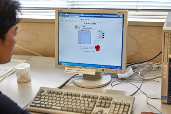 中西さん:いいえ、当センターでは調査船を所有しておりまして、1973年から播磨灘、大阪湾、紀伊水道において海洋観測や栄養塩濃度を測定し、情報を提供してきました。週に1度くらいのペースだったのを「もっと頻繁に知りたい」という漁業者の要望を受けまして、リアルタイムに発信できるようにしたのが現行の『水温観測情報』なんです。