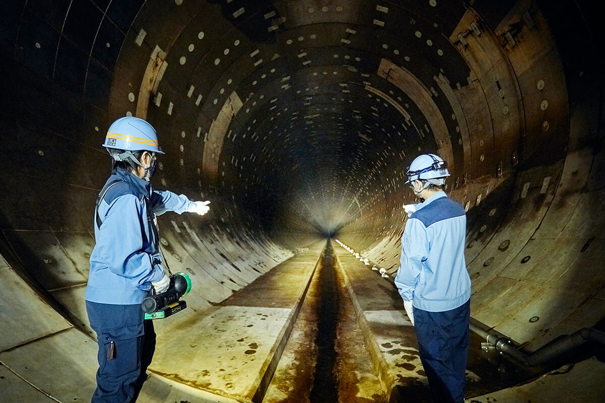 若狭さん:下水道の機能は、人々が生活する上で止めることができません。そのような必要不可欠な仕事に関われているということは、大きなやりがいを感じます。また、今回視察した和田弥生幹線などの下水道施設は、普段は目に見えませんが、実際に見てみるととても大きな施設です。こうした大規模施設の計画などに関われることにも技術職としてのやりがいを感じます。