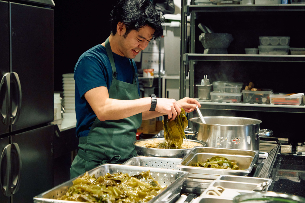 それで代表ふたりと、これまでどういう海藻を扱ってきたか、どのような調味料を使ってきたかなどをお話ししながら試食して、海に潜るときに同行させてもらったりしたんです。その流れで海藻をメインとした料理研究開発をしてみないか、と誘いを受けて、自分自身も知らない食材として可能性を感じたことから、ジョインすることにしました。