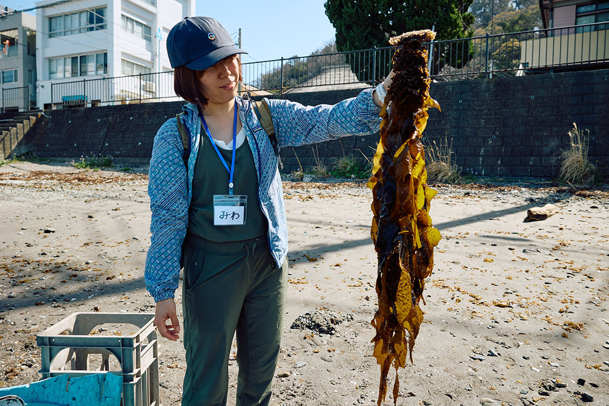 同時に、打ち上げられたワカメも山のように採取できました。浜辺のワカメは持ち帰ることができますが、近年、海水温が高く不漁が続いており、おいしく食べられるワカメは貴重なのだそうです。