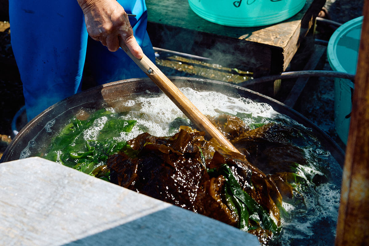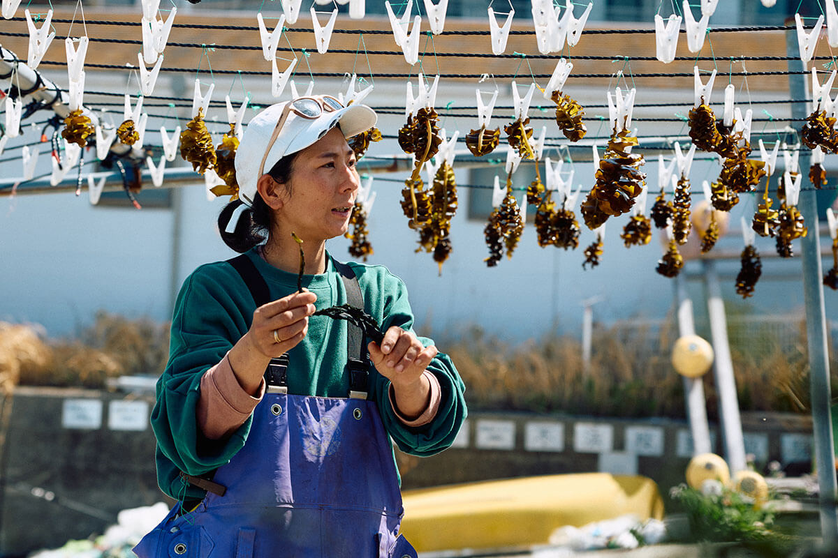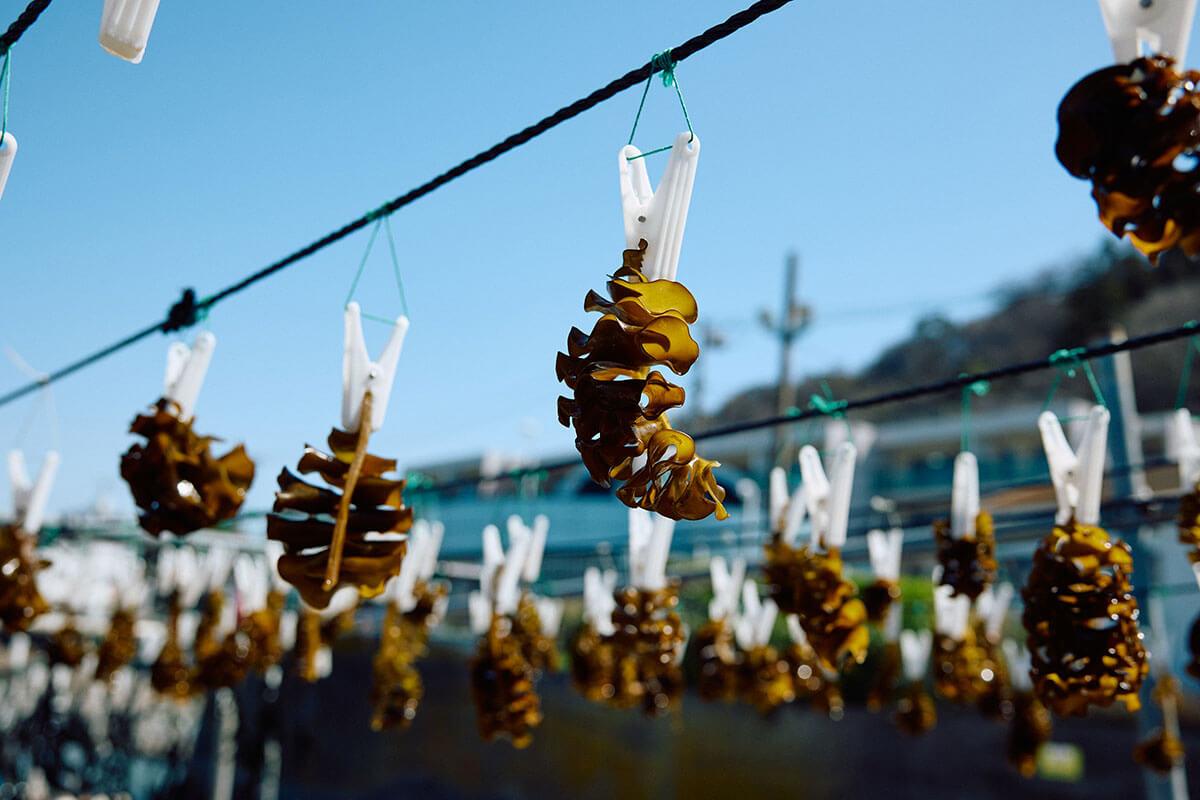 「天然のワカメは硬くて肉厚で、養殖よりも香りが強いです。でも8年くらい前から水温が高くなってきて、ワカメの生育が良くない年があります。また、乾かすと表面に白い点々がつくこともあり、ワカメの品質にも影響します。白い点は、人間でいう毛穴のようなもので、『毛藻』と呼ばれるワカメの器官です。食べても味は変わりませんが、干すと少し目立ってしまいます」