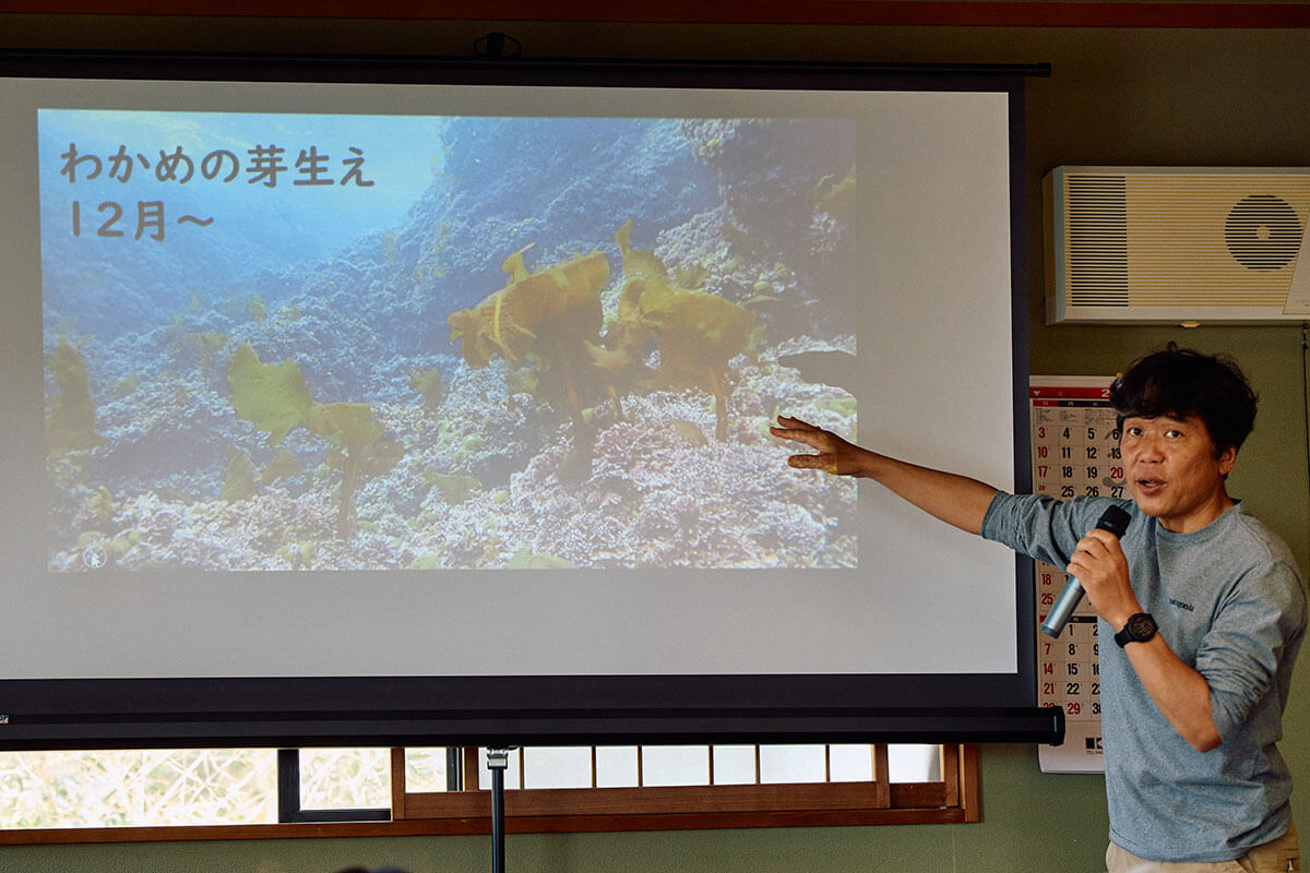 食後に開かれたワカメの勉強会で、そう話してくれた山木さん。しかし、温暖化による海温上昇とウニによる食害で、葉山のワカメも年々減少しています。