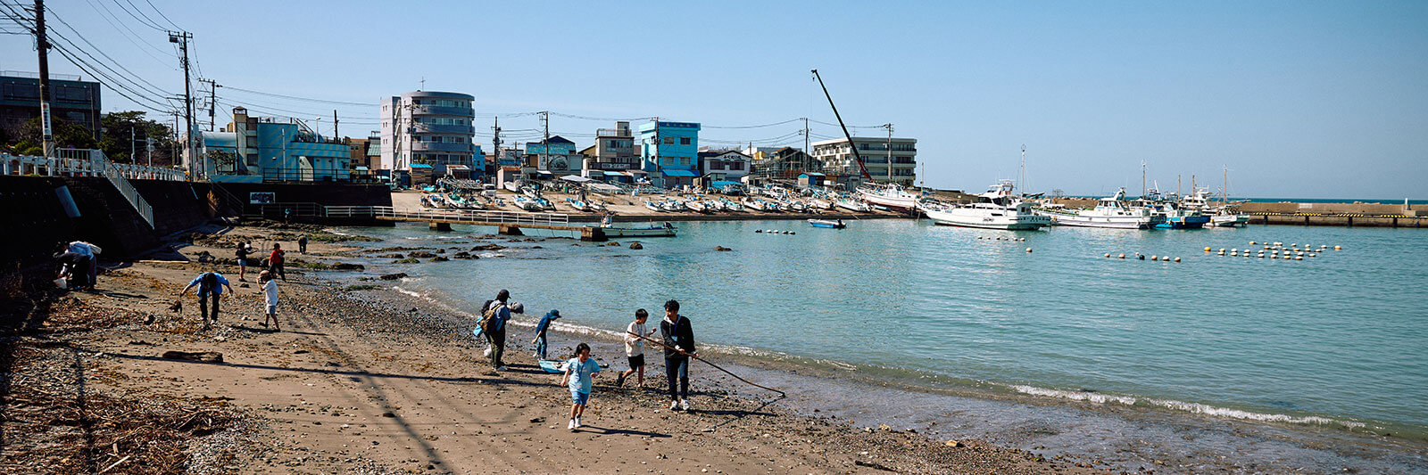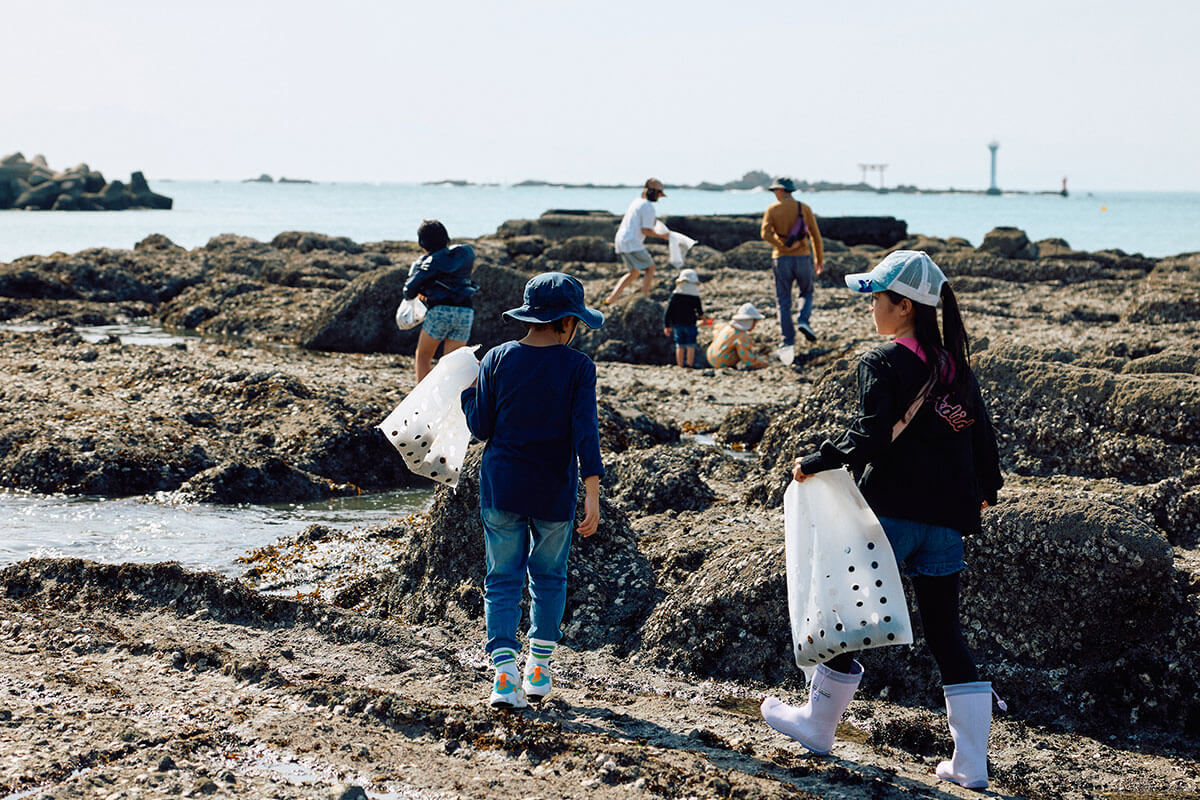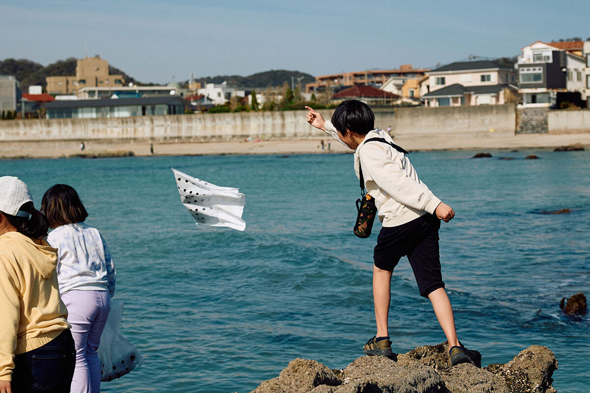 3月下旬、神奈川県葉山町の真名瀬海岸にて『ワカメDAY 2024』が開催されました。これは相模湾の藻場の保全・再生に取り組む葉山アマモ協議会が主催となり、地元のマリン関係者とともに定期的におこなっている海の保全活動。ワカメの旬である春に合わせて開催されたこのイベントに、今回は葉山町の子どもたちとその保護者が合わせて60名ほどが集まり、地元でとれる身近な海藻であるワカメについて学びました。まずは3チームに分かれて、ビーチクリーン、ワカメの釜茹で、ワカメ干しをローテーションで体験します。