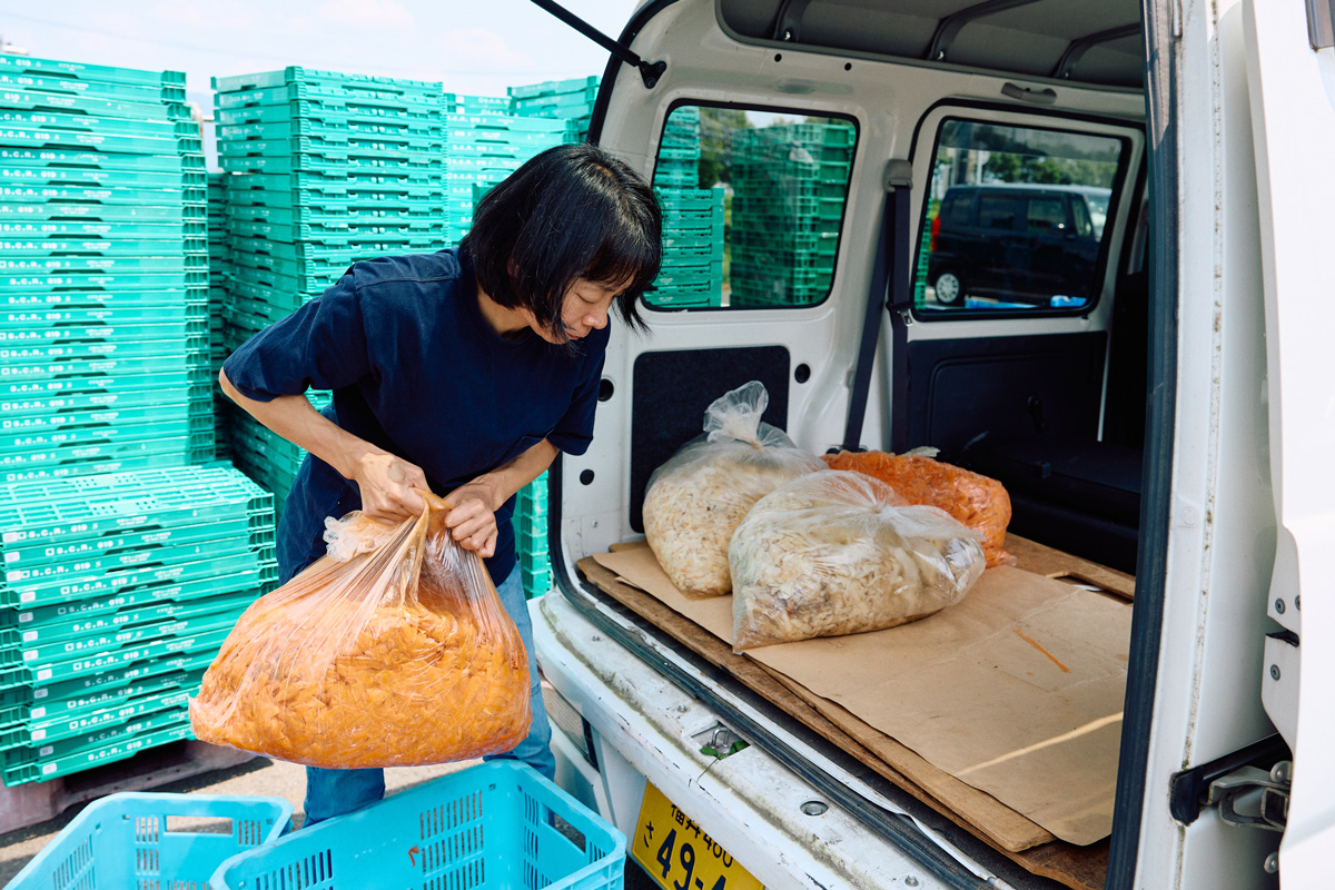弊社は福井工場で毎日500キロ、金沢工場で1トンにものぼる残渣をどう処理するかという問題を、ずっと抱えていました。むいた皮を生産者に戻して、堆肥化して使ってもらい、育った野菜をまた購入する、という循環作りや、飼料を作って牧場に渡すなど、さまざまな方法を考えているなかで、五十嵐さんのことを知ったんです。これは私たちにとってもありがたい話ですし、素敵な取り組みなのでぜひ協力させていただきたい、とお答えしました。