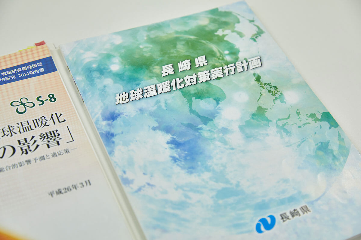 山口さん:S-8で対象とする影響評価はあくまで全国的な指標でしたので、よりローカルな指標を定めることは大変難しかったです。参考にしていたS-8には、農業や水資源、水災害、森林生態系そして健康という5項目のみ。本県の重要な産業である海洋水産や回遊魚に関する気候変動の影響評価や適応策の情報が十分ではありませんでした。知事からも水産業に関する適応策はどうなのかといった指摘もあり、まずは環境部で調査を行いました。しかし、参考文献が少なく、見つかったものを取り寄せてもそのほとんどが英語表記のものばかり。長崎大学水産学部や国の水産研究所を訪れ相談をしましたが、我々が求める回遊魚に関する気候変動の影響を分析する際に必要な情報は得られませんでした。そのため水産分野の適応策を、今後どう計画に盛り込んでいくかは検討すべき課題です。
