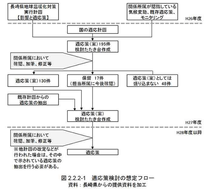 指標がない中でも、長崎県の重要な産業である水産分野に着目し、精力的に取組まれて来たのですね。適応計画には102件もの適応策が示されていますが、どのように抽出されたのですか。
