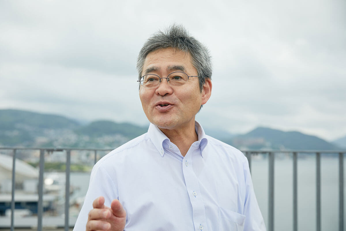 九州北西に位置し、温暖な気候で全国最多の島々を有する長崎県。都道府県別漁獲量は全国2位と豊富な水産資源に恵まれています。全国的に地域の気候変動適応への取組が急務とされるなか、長崎県は2013年4月に策定した「長崎県地球温暖化対策実行計画」に適応という視点をいち早く取り入れました。また、2017年11月には、その具体的な取組を示す「長崎県地球温暖化(気候変動)適応策について」を公表しました。各部局の中長期計画に基づいた102件の適応策を抽出し、部局横断的な施策の推進に従事する長崎県環境政策課課長山口正広さん、係長藤哲士さんにお話をうかがいました。