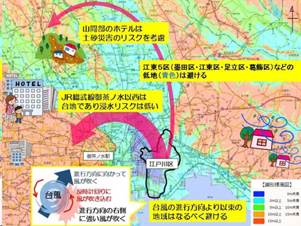 さらに、江戸川区は、旅行会社やホテル・旅館団体と「大規模水害時における住民の自主的広域避難場所の確保支援に関する基本協定」を締結しました。区のホームページには、宿泊先情報のリンク先の他、ホテルを選択する際のポイント等が掲載されています(図4)。