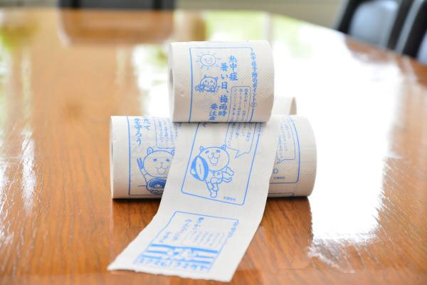 - 熱中症を注意喚起する内容が記載されたトイレットペーパー(図1)と、尿の色や爪の色の変化で脱水症状の危険度を判定できるポスターを作成