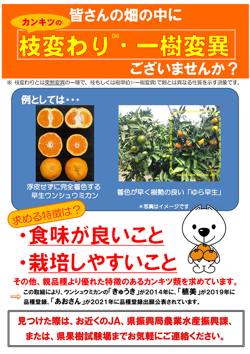 - 和歌山県果樹試験場「カンキツの枝変わりを探しています」
