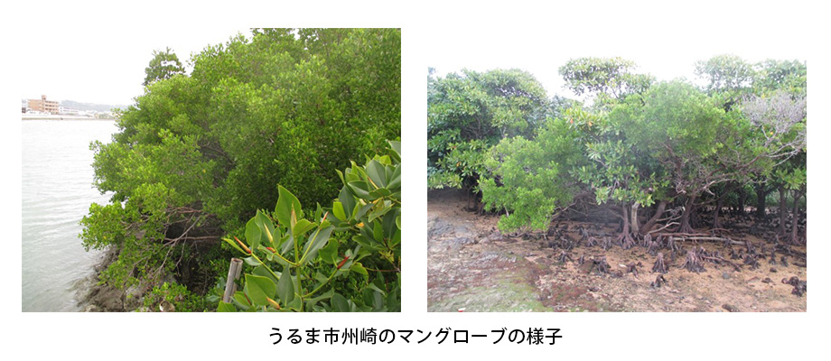 うるま市州崎では、中城港湾域埋立事業の際、水際の動植物を保全するため、マングローブ湿地を設置した。