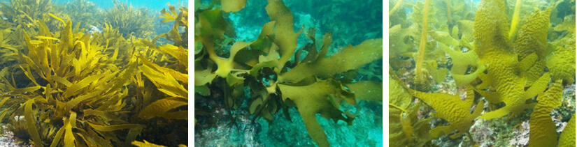 Figure 1: Eisenia bicyclis and Ecklonia cava found in the sea off the shores of Nagasaki Prefecture (Eisenia bicyclis, Ecklonia cava and Ecklonia kurome, from the left) (Fisheries Department of Nagasaki Prefecture in 2018)