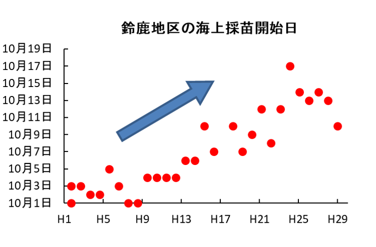 Figure 2: The start date of seed planting in the sea in the Suzuka area