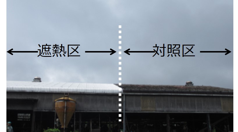 Matsuo:The Domestic Animal Biotechnology Department is conducting (1) the application test of thermal insulation paint to a cowshed roof and (2) the verification of cooling by a cow jacket. About the test (1), we divided the cowshed into a heat insulated area with the thermal insulation paint applied to the roof and a control area without the paint and compared the areas in early August. For the verification (2), we put a jacket on cows and compared the cows in a shower area where they were showered with water while being fed and those in a control area where they were not showered in July to September.