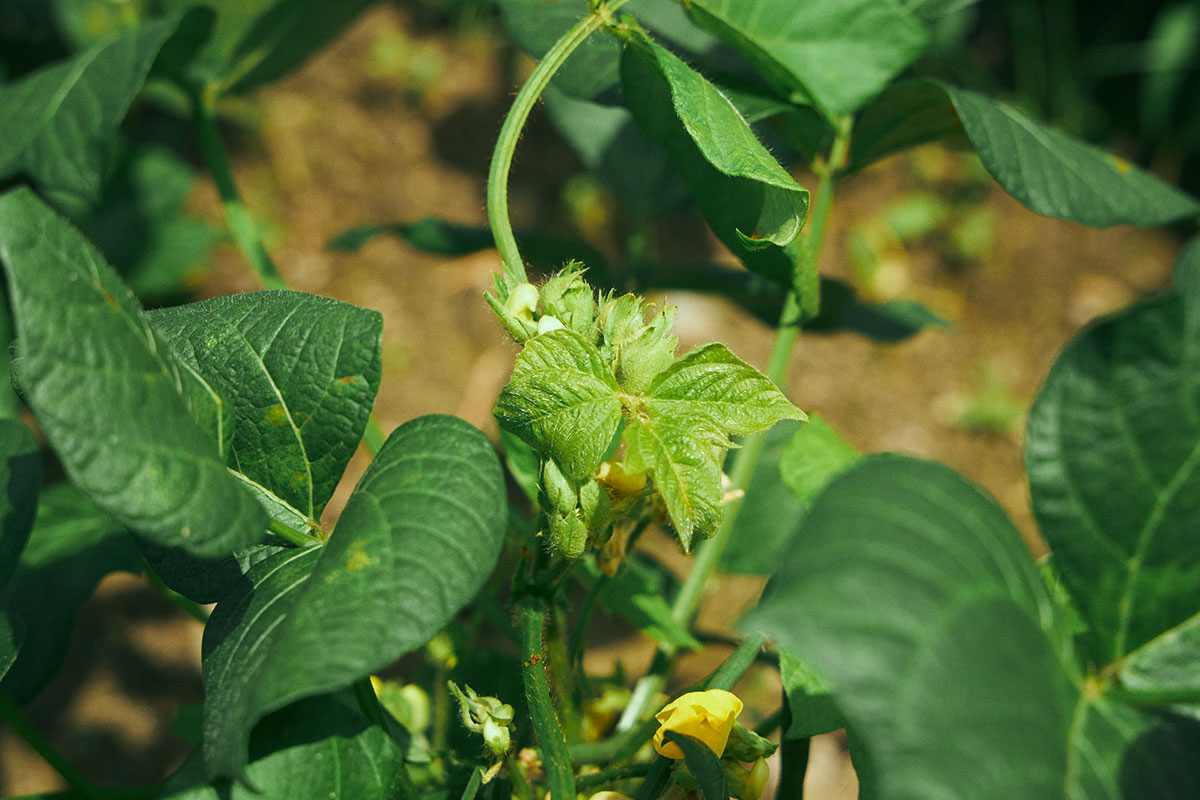 Because their roots are inhabited by a special type of bacteria called rhizobia, legume plants do not require much nitrogen fertilization. However, many legumes are susceptible to damage caused by excess water. In the case of farmland converted from paddy fields such as ours, the ground tends to hold water, leading to poor germination and root rot. In other words, to avoid such issues, attention must be paid to the amount and timing of precipitation and their relation. So, when the rainy season arrives and passes each year does affect the timing of seed planting significantly. Since the rainy season has gotten longer in recent years, the harvest varies widely from one year to another. In the case of adzuki plants, if there is so much precipitation close to their blooming season to cause inundation, their pollination fails and no beans grow. While the soybean is more resilient against inundation to a degree, the adzuki bean is highly susceptible to too much water.