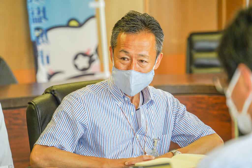 Director Oki:After experiencing the recent abnormal weather and the spread of COVID-19, our city aims to construct the “Sustainable City of Nasushiobara.” As a part of such efforts, our Bureau works on the “Nasunogahara Green Project.” It consists of 4 specific measures. These are (1) Local utilization of the local renewable energy, (2) Energy saving at institutions and facilities, (3) Adaptation to the effects of climate change, and (4) Cross-cutting matters. In (3) Adaptation to the effects of climate change, we plan to collect information in the subject fields including agriculture, tourism, education, disaster prevention, and life of citizens. While maintenance of infrastructure is important in disaster prevention, there are also many challenges such as population decrease and budget shrinkage. We are therefore currently considering conducting an investigation on Ecosystem-based Adaptation (EbA). We utilize heatstroke prevention information, which is provided by the Ministry of the Environment, as a measure against heat. We refer to the heatstroke prevention information and distribute e-mails to raise caution on heatstroke via “Miru Mail,” which is an e-mail delivery service by the city, in the morning of days on which there is a forecast for the wet bulb globe temperature index (WBGT) to reach 31C or higher, or when the WBGT actually reaches 31C. The concerned department or bureau will also urge the relevant parties to take measures against heat when the e-mail is delivered. For example, the education department will urge the elementary and junior high schools to take measures.