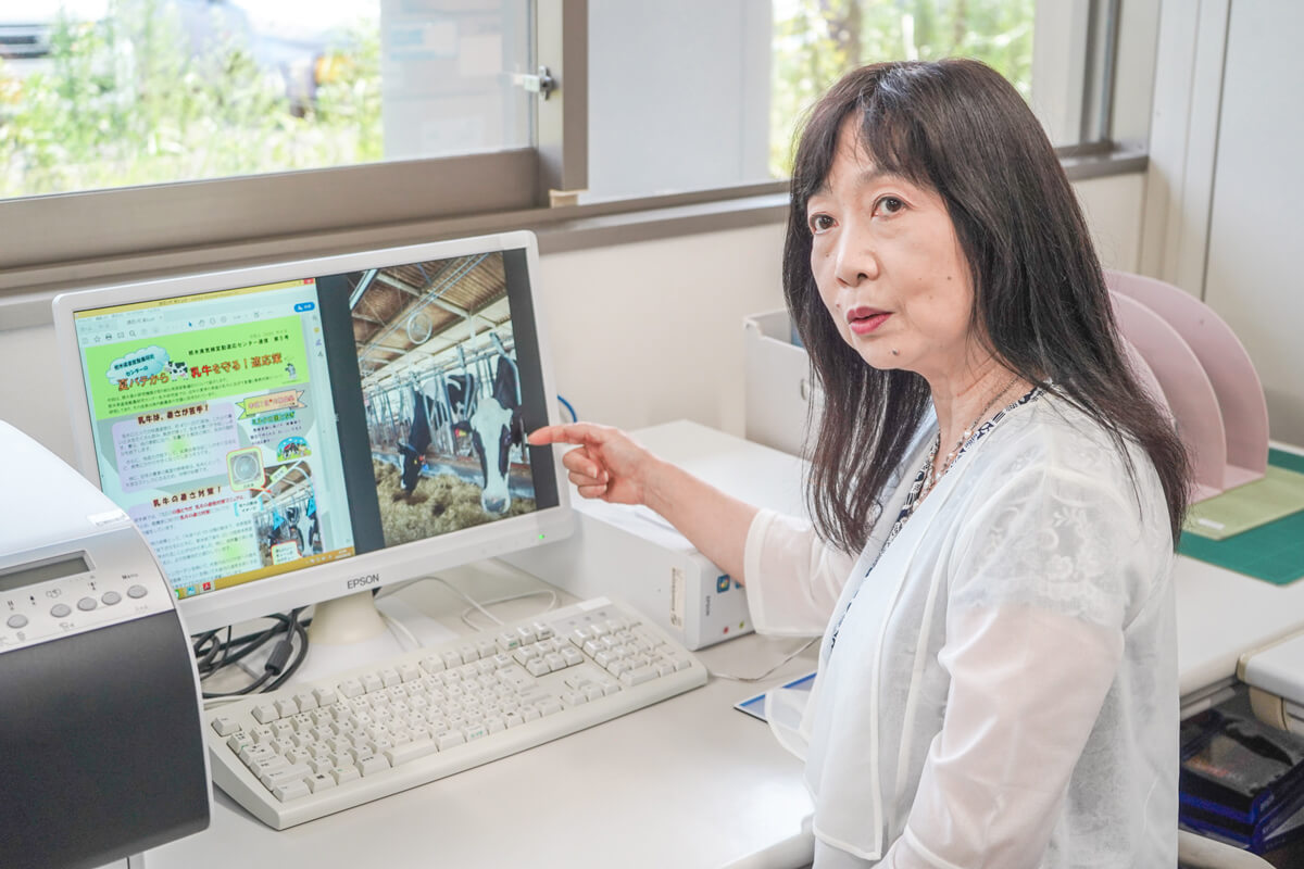 Ms. Wakairo:We have transmitted information on measures against heat stroke, including utilization of parasols and heat stroke alert, in Center News. In the 5th issue we just published the other day, we discussed the adaptation measures for dairy cattle, taking the opportunity of our interview with the prefectural animal husbandry experiment station. While the comfortable temperature for dairy cattle is said to be up to around 20C, it has exceeded 30C for an increasing number of days during the summer, even in the northern region of the prefecture where dairy farming is popular. Under such circumstances, effects such as a decrease in the amount of milk and milk fat rate caused by high temperatures have become matters of concern. Research institutes of our prefecture are therefore supporting the dairy farms of the prefecture which deliver “the largest raw milk production in Honshu” by studying effective measures against heat in cattle, such as spraying groundwater at the base of the neck of each cow. We hope to continue to transmit various measures for adaptation through Center News in the future.