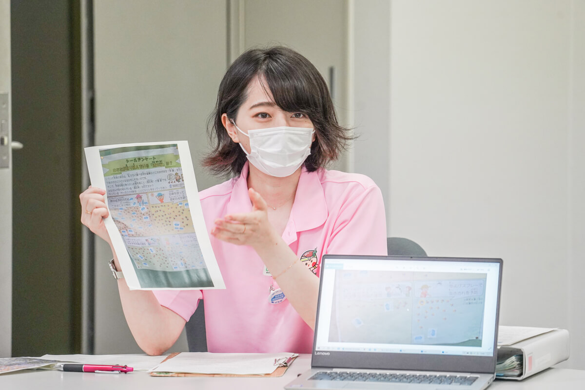 Ms. Yamagata:We started awareness raising through lending of mist tents since the previous fiscal year. Mist tents can be used to reduce the sensible temperature through composite measures of heat shielding with the tent and addition of the wind from the electric fan to the evaporation heat by the mist. We lend out these tents to events by the prefecture, cities, or towns for the purpose of having the event participants learn about “climate change” and “adaptation” by using the opportunity of experiencing a measure against “heat stroke,” which is a familiar effect of climate change. We lent the tents out to 18 events last year. Furthermore, at environment-related events, we distribute to the event participants sticker surveys on effects of climate change that they feel familiar with (timing of cherry blooming, heat, short and heavy downpours, and how it snows) and adaptation measures they practice (hydration and use of parasols to prevent heat stroke, check on hazard maps, and prevention of insect bites with insect repellents). We use them as an opportunity to transmit information that the impacts of climate change can cover a very wide range of fields. For example, people may ask us “we do use insect repellents, but why climate change?” for the item “prevention of insect bites with insect repellents” on the sticker survey, and we can reply “it can be an ‘adaptation measure’ because the risk of getting bitten by mosquitoes carrying some virus will be higher when the habitat for mosquitoes expand due to the heat.” It is a topic that definitely gets people interested saying “there is such an impact!?” (laughs).