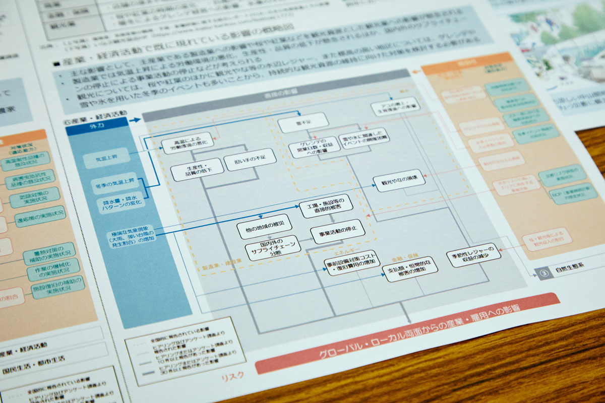 Mr. Aikawa: There are mainly two major benefits that resulted from our application of this method. Let me explain. So, when we interview City government employees from different departments and also business operators, the conversation always starts around the question of what climate change adaptation is. Then, before each individual gets into a wide range of topics and provides us with related information, they always state this caveat that they are not certain what they are going to tell us are effects of climate change. But when we apply the impact chain method, we can not only organize the components of each interview, survey, etc. but also sort any issues that become salient in the process, all on the same single chart. The other benefit of the method is its ability to create a visual representation of how the identified effects of climate change would lead to future consequences. While we are currently in the process of providing feedback to the interviewees, all parties involved on both sides have come to a better understanding of how extreme heat causes specific ripple effects based on the single pictorial diagram, which was quite obscure during the initial round of interviews, but now we are able to have roundtable discussions, etc. The method also has yielded this significantly positive effect that allows any department staff at the City government and business operators to express their opinions with more ease while discussing any new ideas and necessary future actions, looking at the same image.